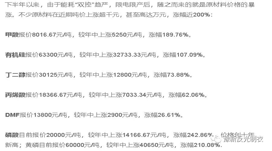 當(dāng)限電遇上原材料漲價(jià),工廠生產(chǎn)成本上升,企業(yè)經(jīng)營面臨較大壓力,紛紛調(diào)整產(chǎn)品價(jià)格。無論是源頭端煤炭的供不應(yīng)求,還是生產(chǎn)線限產(chǎn)、開工率持續(xù)低位帶來的低迷行情,對于企業(yè)而言都是致命的。成本激增之下,企業(yè)只能選擇漲價(jià)的方式將壓力轉(zhuǎn)嫁至下游,進(jìn)行“自救”。