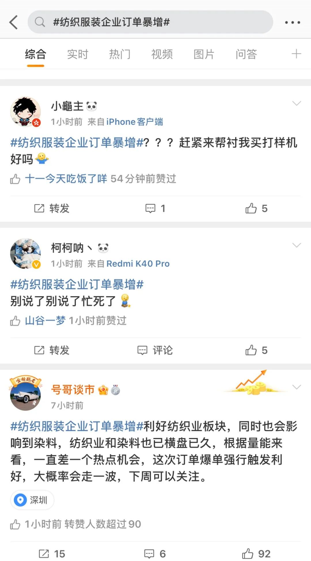 近日,央視財經(jīng)《正點財經(jīng)》欄目調(diào)研了諸多外貿(mào)型加工企業(yè),報道稱:由于外需市場明顯回暖,國內(nèi)服裝出口持續(xù)增長,一些服裝加工廠的訂單甚至排到了明年。一時間,“#紡織服裝企業(yè)訂單暴增#”——話題詞條,更是一度登上微博熱搜,網(wǎng)友紛紛點贊表示:“中國紡織YYDS!”
