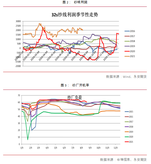 1、產(chǎn)業(yè)利好的直觀表現(xiàn):紡紗利潤高及開機率高棉花的直接下游是紗廠,因此紗廠的高利潤及高開機成為棉花產(chǎn)業(yè)利好的直接體現(xiàn)。去年10月份以來,紗廠維持高利潤和高開機率已經(jīng)較長時間,而今年以來的棉價上漲,產(chǎn)業(yè)因素上也大都有紗價上漲及紗廠利潤高企的推動。而目前重新逼近萬八的棉價,其對應的32支紗的利潤依然有2000元/噸。未來可以參照該兩個指標來衡量棉花端價格是否還有支撐及支撐在哪里。去年9月份是全產(chǎn)業(yè)庫存的低位,后來紗廠和布廠的原料庫存逐級補了起來,只有紗廠和布廠的產(chǎn)成品庫存在低位,但是再考慮棉紗貿(mào)易環(huán)節(jié)的庫存也大增,整體國內(nèi)原料、紗布庫存偏中性。3、產(chǎn)業(yè)逐漸傳來的利空:終端數(shù)據(jù)轉(zhuǎn)弱、坯布環(huán)節(jié)利潤無法傳導、訂單轉(zhuǎn)差、外單前置后對旺季可能不旺的擔憂……今年6、7月紡織產(chǎn)業(yè)鏈呈現(xiàn)了“淡季不淡”的特征,整體下游的訂單給予了良好的支撐。而且今年棉紗貿(mào)易環(huán)節(jié)有供應鏈金融的介入,導致棉紗的貿(mào)易環(huán)節(jié)蓄水池放大,也增加了棉紗的投機需求量。但進入8月以來,棉紗貿(mào)易環(huán)節(jié)漸近飽和,而下游淡季特征也趨于明顯。面臨節(jié)節(jié)走高的棉、紗價,從織布到服裝環(huán)節(jié)也出現(xiàn)承接不暢的情形,再加上坯布產(chǎn)能擴張后面臨過剩格局,導致坯布環(huán)節(jié)直接出現(xiàn)虧損。而且坯布環(huán)節(jié)的現(xiàn)金流變得緊張,主要是賬期未變或者因疫情擾動變長的情況下,加上貨品單價上漲,導致應收賬款明顯擴大,同時又面臨上漲的原材料。最近,包括蘭溪等地,已出現(xiàn)了坯布停機的情況。外單方面,市場也普遍反映由于海運不暢,圣誕訂單已提前,目前已在發(fā)運中,因此會打破此前的淡旺季節(jié)奏。關(guān)于外單,有品牌商表示,當前已接到明年春夏訂單,因此外單是前置而非透支。但是相較數(shù)量更大的圣誕訂單,確實外單有所轉(zhuǎn)弱,這個也需要進一步觀察。關(guān)注行業(yè)動向,撥開2021年行情迷霧,抓住這波賺錢紅利期,一飛沖天吧!向您推薦一個不錯的公眾號